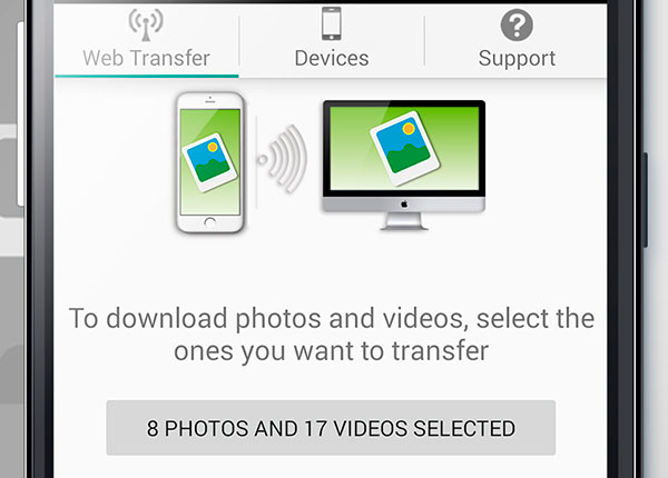 The easiest way to transfer, backup and share your photos and videos!, to your PC and between Androids, iPhones and iPads. Like the iOs version use any web browser from your computer to download and upload Photos and Videos from your device. Also transfer photos and videos between Android, iPhone, iPad or iPod Touch devices, using Wi-Fi.