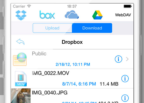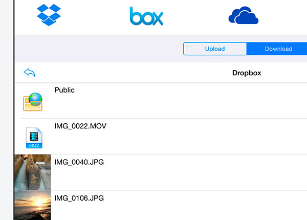 - Transfer photos in RAW formats between iPad and computer, iPads and Dropbox, SkyDrive, GoogleDrive and Box.
