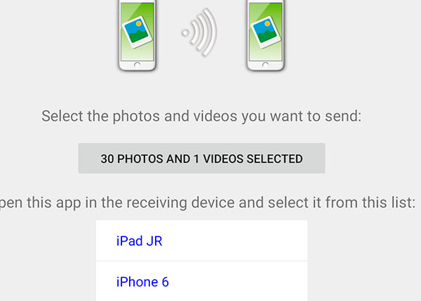 - To transfer photos from one device to another both devices need to have this app installed.
